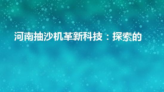 河南抽沙機(jī)革新科技:探索的未來(lái)?